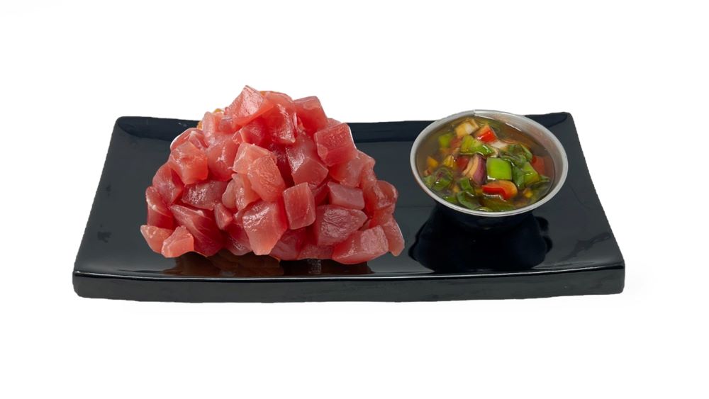 הסביצ'ה - דג טונה בלו/יילו פין חתוך לקוביות , מלווה ברוטב .
