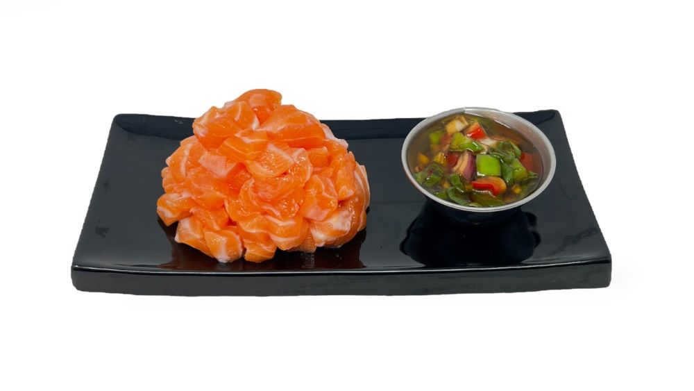 הסביצ'ה - דג סלמון חתוך לקוביות , מלווה ברוטב .